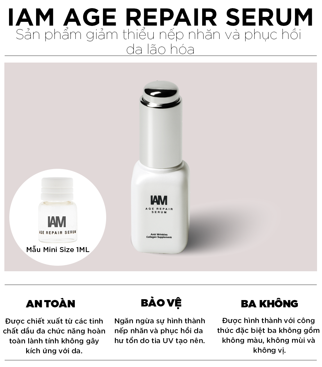 IAM AGE REPAIR SERUM thuộc thương hiệu IAM Cosmetics, chất lượng Nhật Bản đóng gói tại Thái Lan.