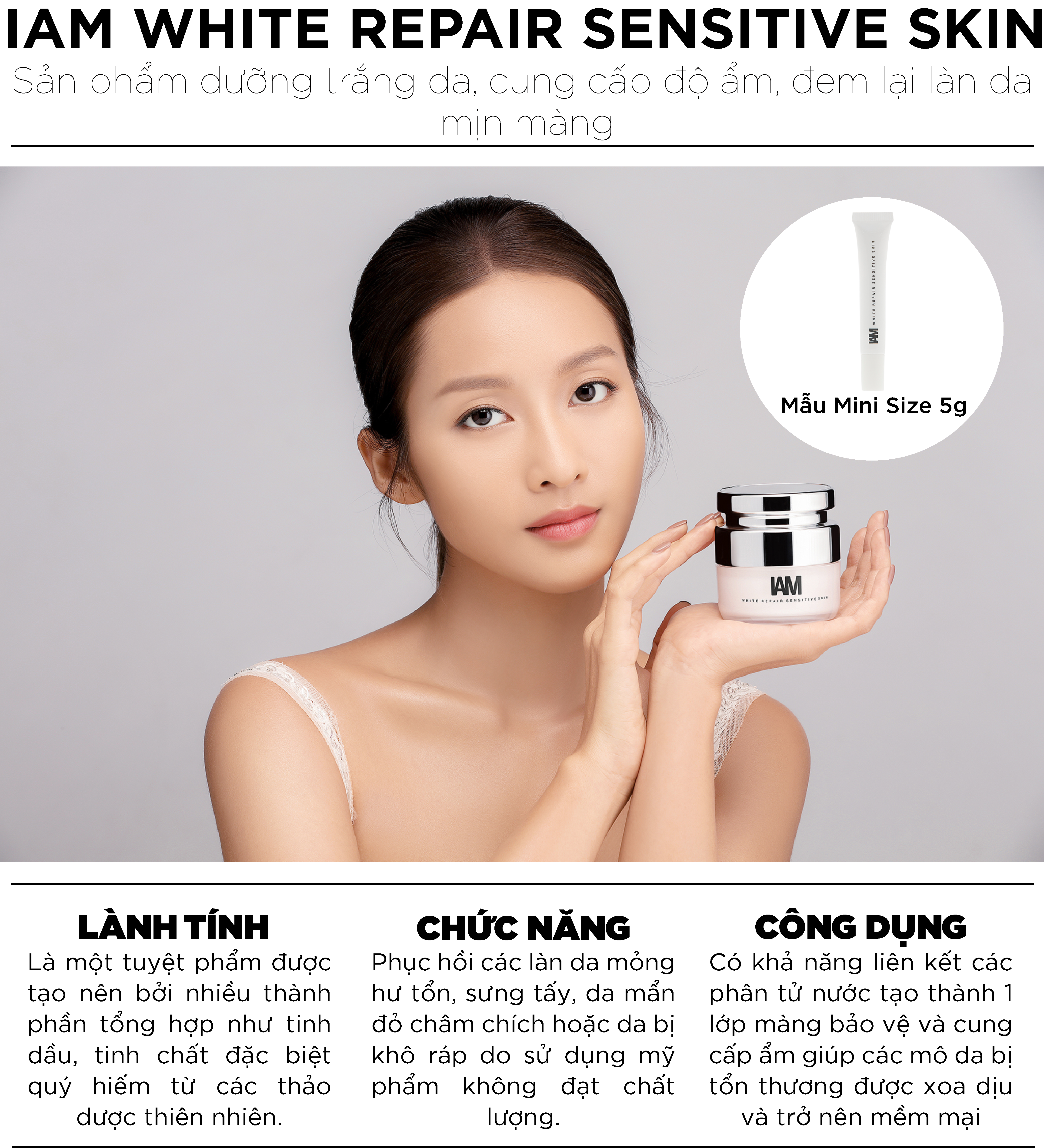 IAM WHITE REPAIR SENSITIVE SKIN thuộc thương hiệu IAM Cosmetics, chất lượng Nhật Bản đóng gói tại Thái Lan.